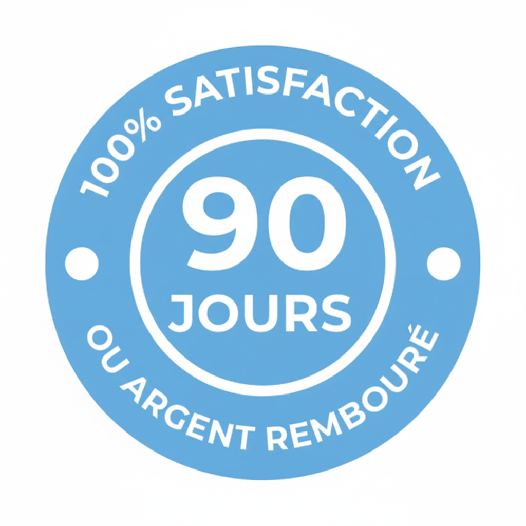 Nous croyons en l'efficacité de nos produits et nous ne voulons pas que vous dépensiez un centime avant d'être certain(e) que le produit vous convient. C'est pourquoi chaque commande est assortie d'une garantie de remboursement de 90 jours, sans risque. Si, pour une raison quelconque, vous n'obtenez pas le résultat souhaité, vous serez remboursé(e).